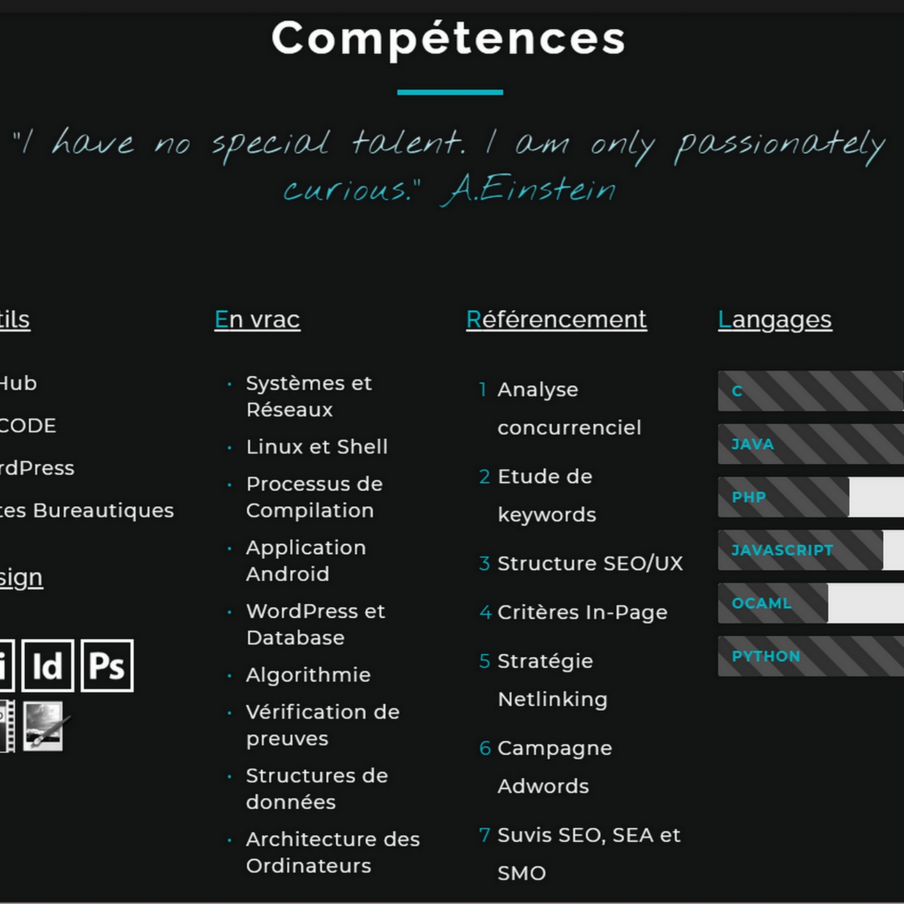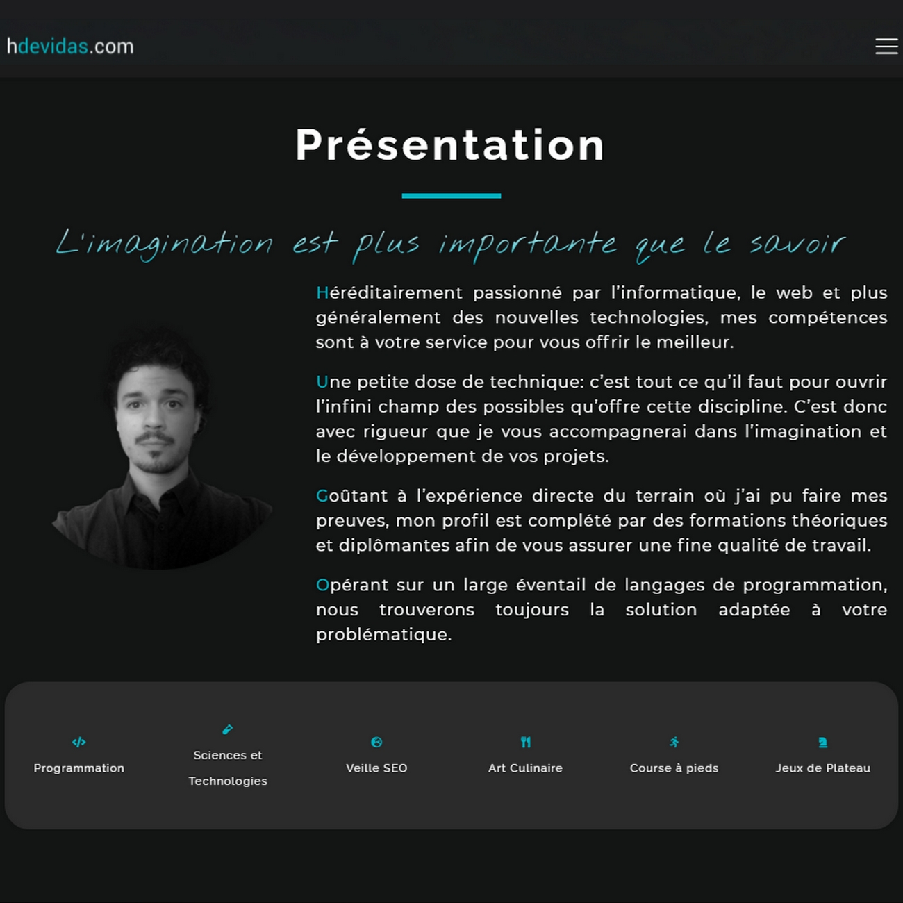 Une carte de visite virtuelle, singulière et unique. Ce site est à la fois un CV et un portrait de son propriétaire, démontrant un regard aiguisé et sensible.